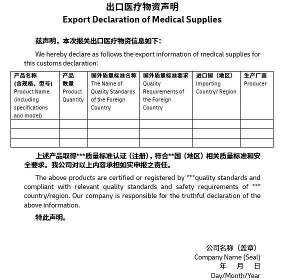 出口医疗物资声明-正本(5号公告中所列5类医疗物资符合国内质量标准) |