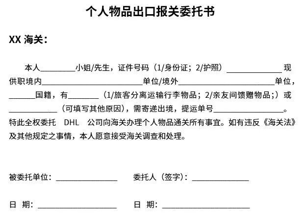 寄件人要准备的出口相关单据包括运单、发票、个人物品出口报关委托书(点击此处下载模板),同时出示身份证/护照原件并提供正反面的复印件。请在填写单据时提供口罩的个数。口罩及其他防疫物品需为正规厂家生产,不要购买和寄递“三无“产品。